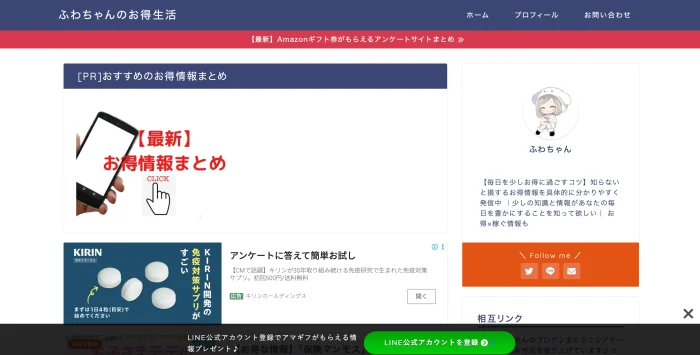 「ふわちゃんのお得生活」は、日々の暮らしを少しでもお得に、かつ賢く過ごしたいと考える方々に向けて、多彩な「節約×稼ぐ」情報をわかりやすく届けるWebメディアです。